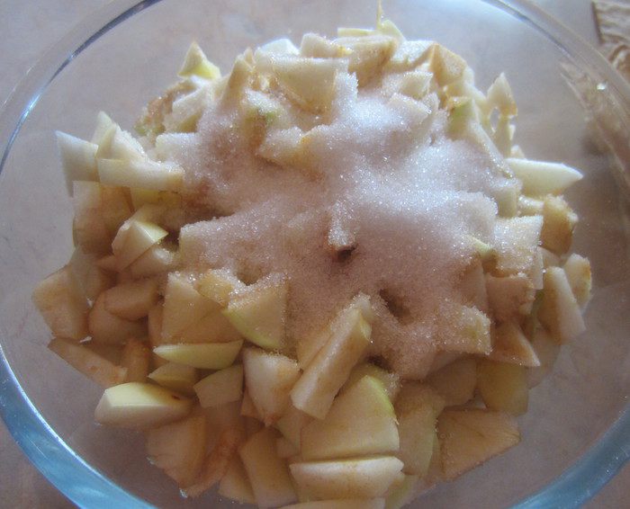 Добавляем сахар, ориентируйтесь на свой вкус и сорт яблок.