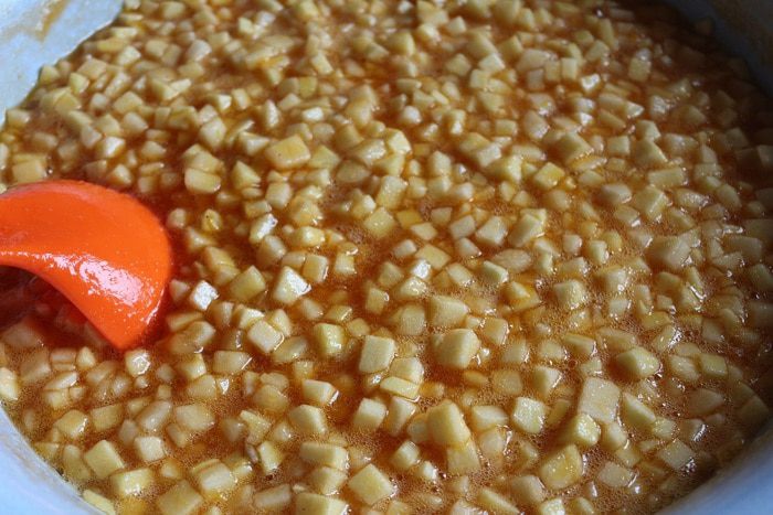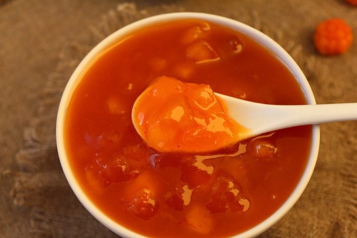В кастрюлю перелить пюре морошки, добавить сок лимона, сахар. Поставить на средний огонь, довести до кипения, добавить порезанные яблоки, цедру лимона и варить на среднем огне около 15 минут, снимая пену в процессе варки. Оставить до полного остывания.