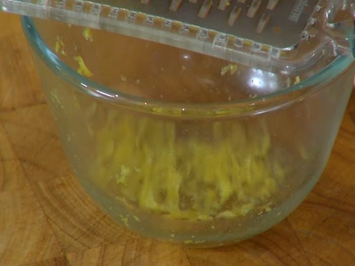 Цедру лимона натереть на мелкой терке, выжать 2 ст. ложки сока.