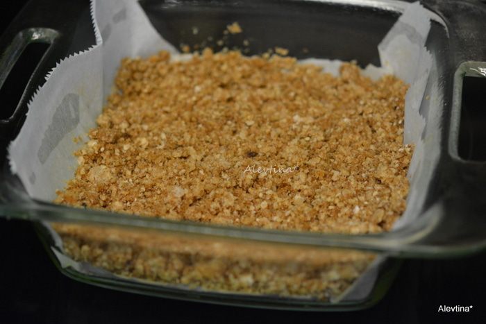 Приготовим квадратную форму. Смажем дно маслом, выложим бумагу для выпечки, смажем вновь дно. Выложим приготовленную основу, разровняем.