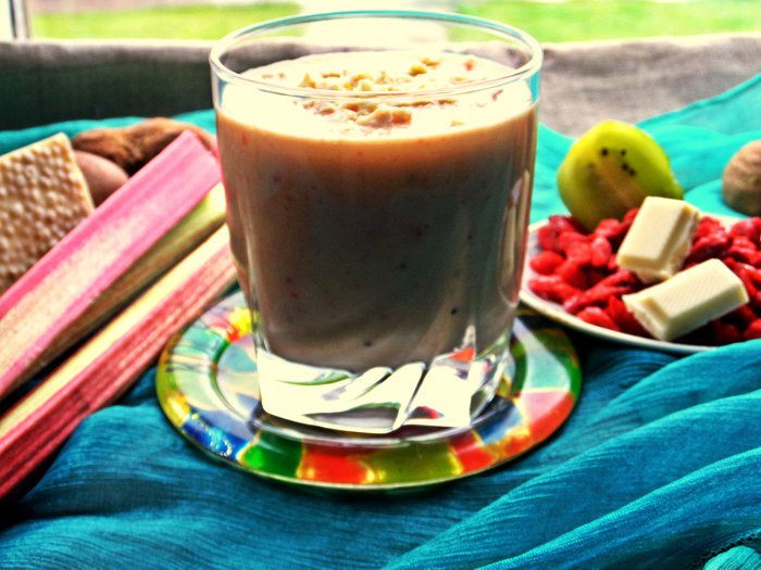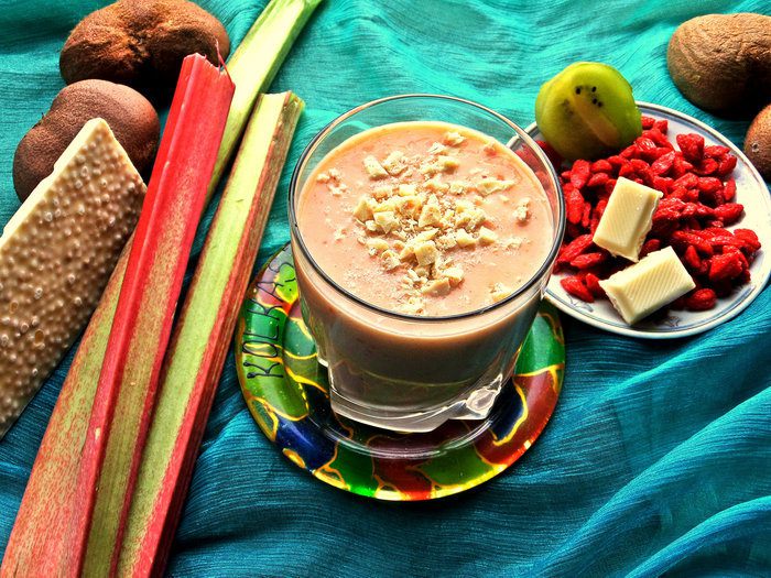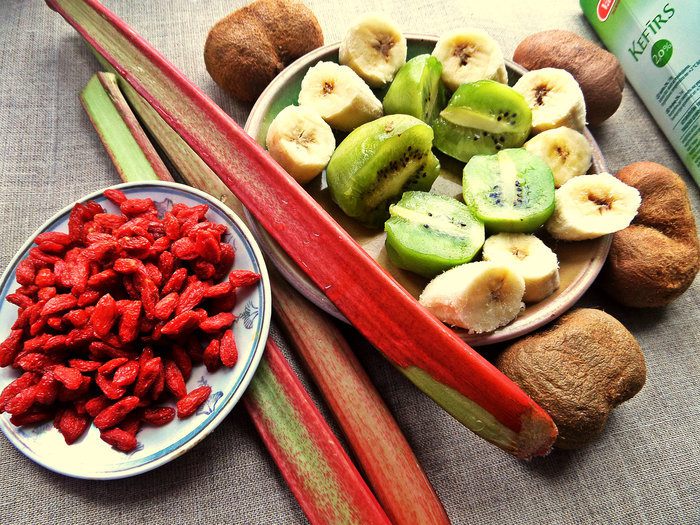 Порадуйте летом себя прохладным густым смузи! Попробуем использовать витаминный ревень, который оказывается хорошо сочетается с киви и бананом!