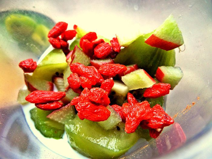 Высыпать годжи, мёд по вкусу.