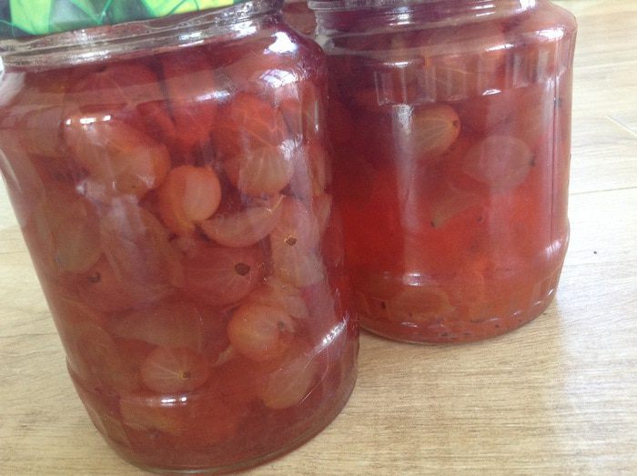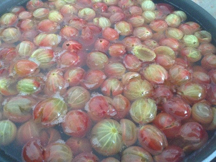 У крыжовника слит воду и залить сиропом, дать настояться 10-15 минут.