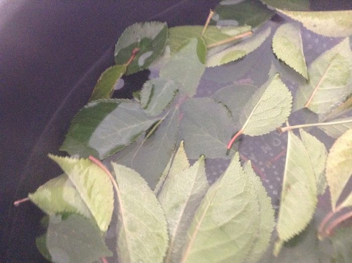 В кастрюлю налить 5 стаканов воды, лимонную кислоту и листья, вскипятить. Варить 5 минут. Воду процедить.