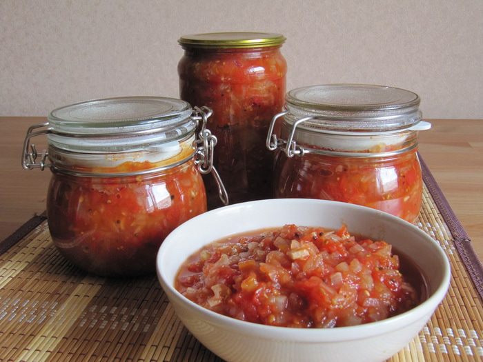 В кастрюлю с толстым дном (у меня 5-литровая) положить нарезанные помидоры, лук и яблоки. Добавить зерна горчицы, сахар и яблочный уксус. Поставить на несильный огонь и варить, периодически помешивая, 2 часа. Время варки может несколько отличаться. Как только консистенция станет достаточно густой, разложить чатни в стерилизованные банки и закрыть стерилизованными крышками. Укутать полотенцами и оставить остывать.