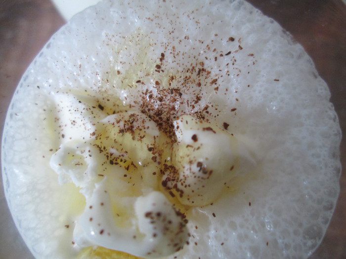 Сладкий пломбир в этом коктейле приятно сочетается с имбирной и коричной горчинкой.