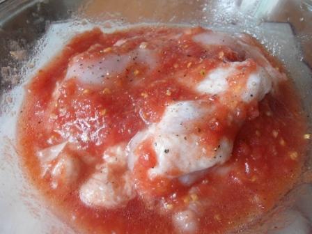 Залить маринадом курицу и оставить в холодильнике на пару часов (можно больше). За это время я перемешала 2 раза.