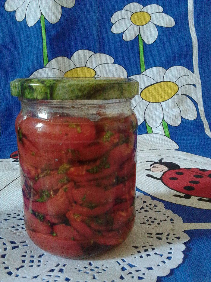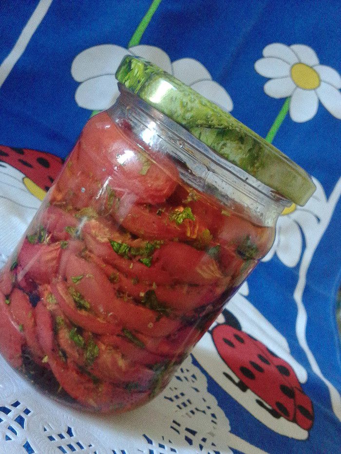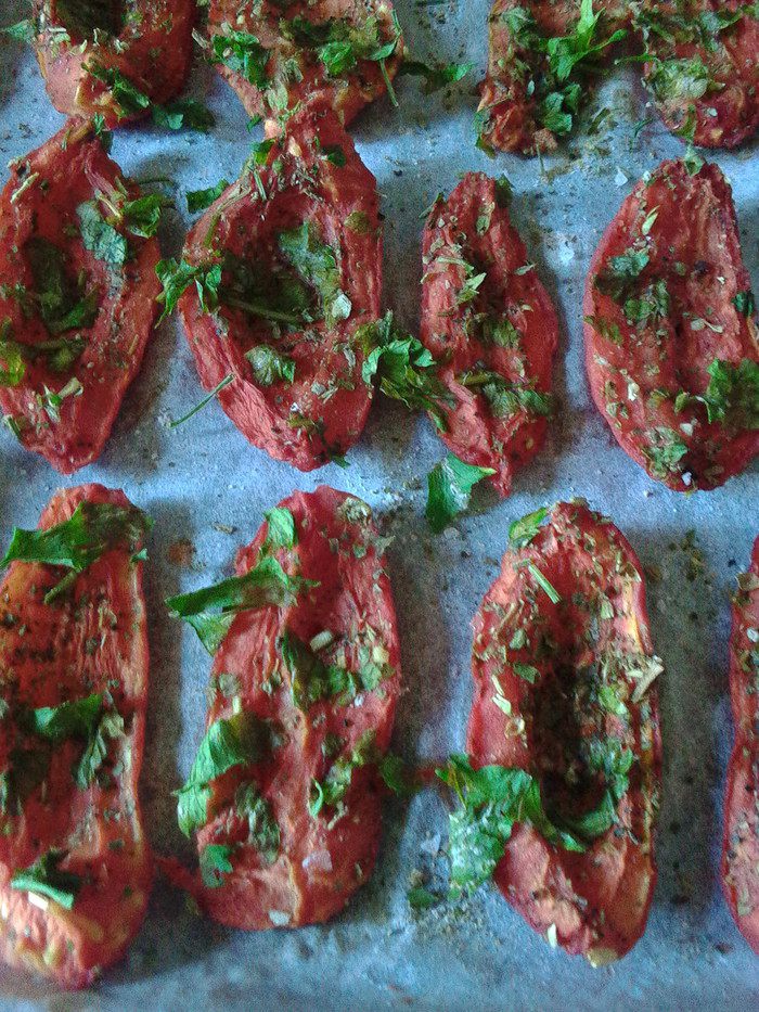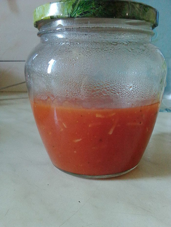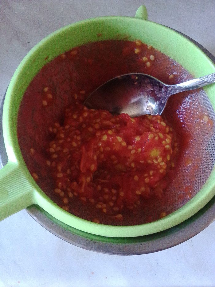 Удаленную мякоть с семенами и соком не выбрасываем, а провариваем 1-2 минутки, пропускаем через сито, а к полученной жидкости добавить 1 ст. л. растительного масла, 1 ч. л. соли, 1 ст. л. сахару и проварить 10 минут . По желанию перец, итальянские травы, давленый зубчик чеснока и в конце 0,5 ч. л. крахмала, разведенного в 1 ст. л. воды для загустения.