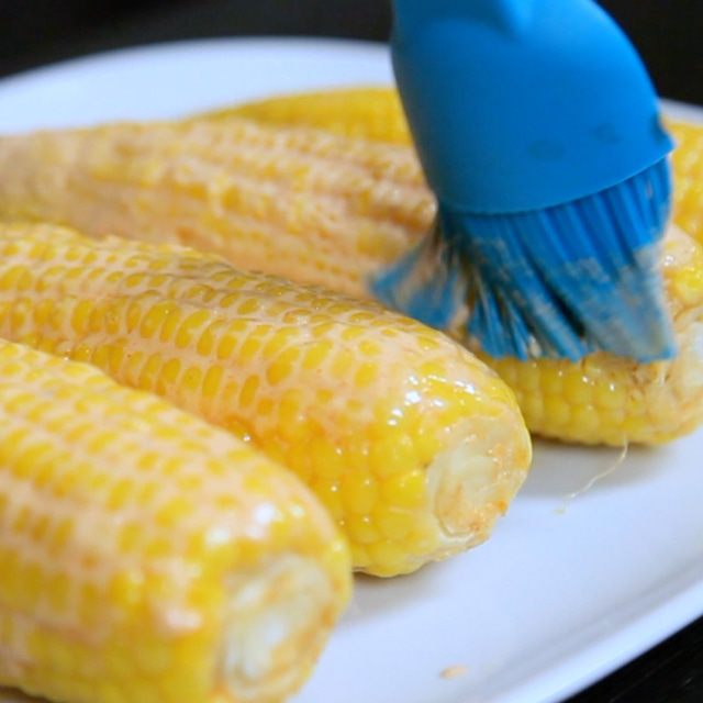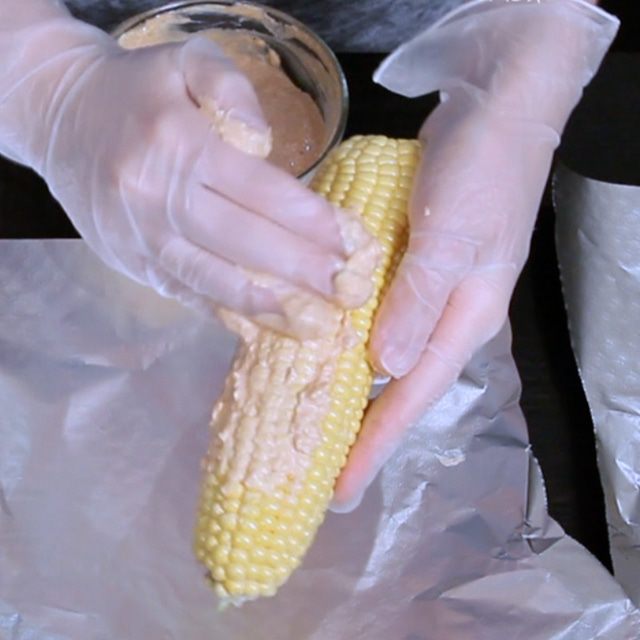Натереть тщательно каждый початок. Оставить немного соуса для подачи.