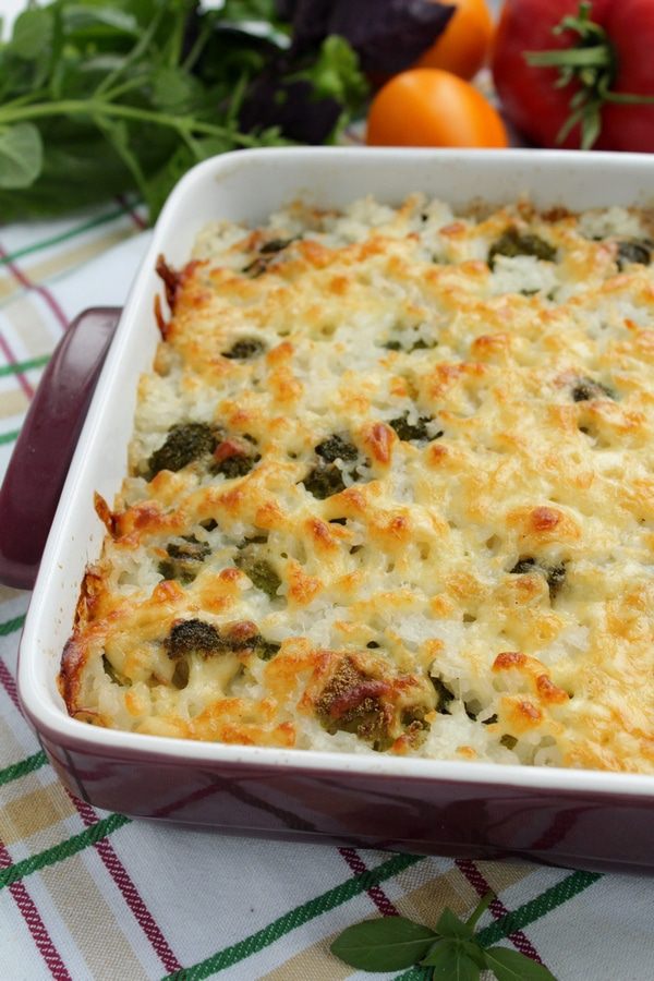 Готовьте запеканку в духовом шкафу при 180°С 30 минут. За 10 минут до готовности посыпьте запеканку тертым сыром и запекайте до золотистой корочки.