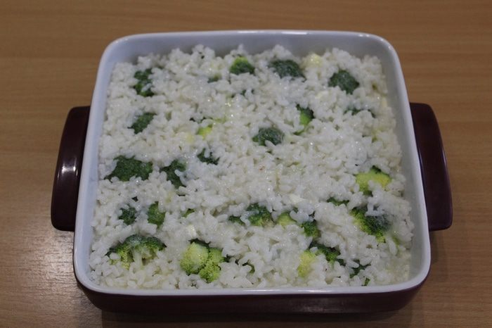 Выложить отваренный рис.