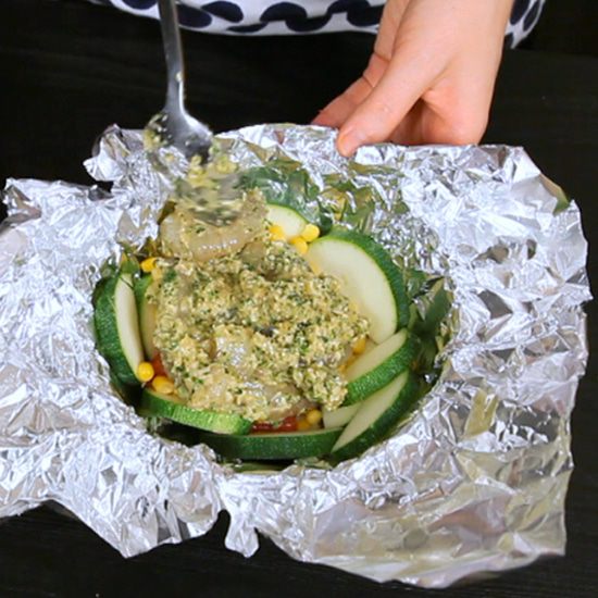 Также это блюдо можно приготовить и на мангале. "Мешочки" из фольги идеально для этого подходят.