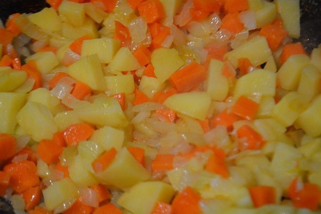 Спассеровать овощи на растительном масле до мягкости лука.
