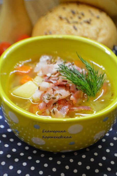 Этот суп подходит для холодных зимних деньков! Когда хочется согреться вкусным, ароматным супчиком! Просто идеальное сочетание бекона, тмина и квашеной капусты!!Уверяю, родные попросят добавки!