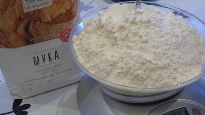 Муку просеиваем. Как я написала выше, я использовала муку хлебопекарскую «Рязаночка».