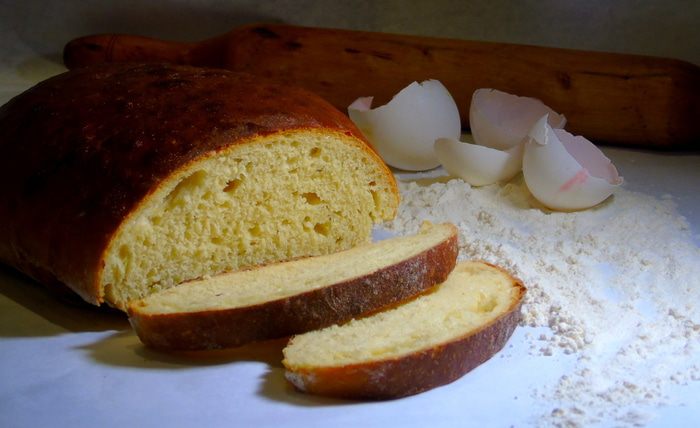 Простой в приготовлении, без лишней мороки, домашний, уютный и очень вкусный хлеб, который отличается пышностью и нежностью. Кусочком такого хлеба очень вкусно вымакивать соус из тарелки)) Пышность и нежность хлебу придают яйца и, конечно же, качество муки. Муку я использовала хлебопекарскую «Рязаночка», мука просто замечательная, не «плывет», а хлеб выходит высоким и красивым. Процесс замеса можно смело доверить хлебопечке, что я и сделала, но это совсем не принципиально. Если вы все будете готовить вручную, то точно также отдельно смешиваете жидкие ингредиенты, а отдельно сухие, затем смешиваете.