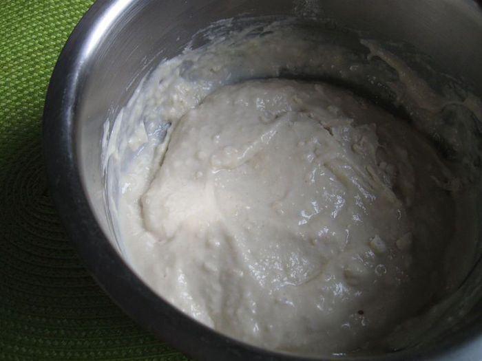 Перемешать и поставить в тепло, пока опара не поднимется (примерно 90 минут). Когда поставите опару, накройте кастрюлю полотенцем.