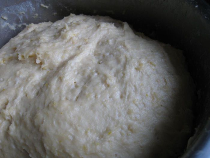 Растворить 1 ч. л. меда, дрожжи и цедру 1/2 лимона в подогретом в кастрюле до теплого состояния молоке.
