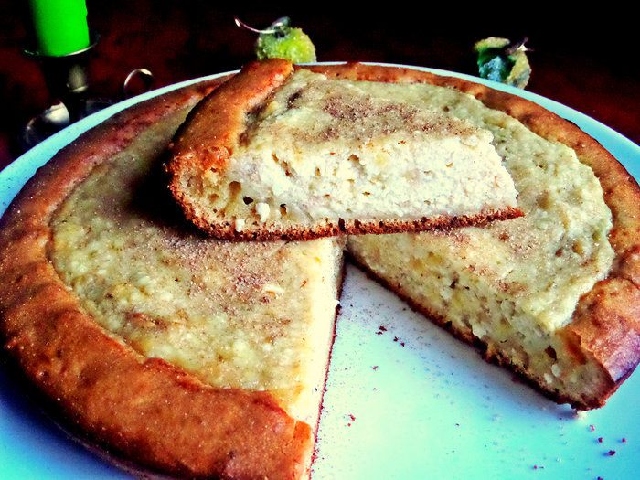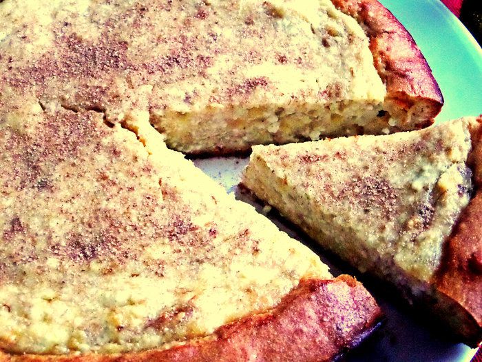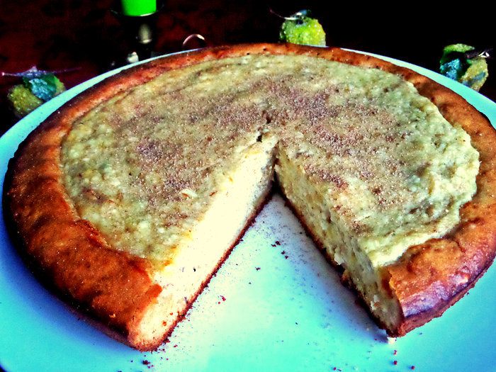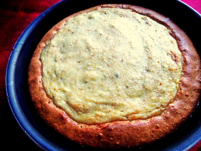 Выпекаем полчаса при 180°С до золотистых краешков, но не стоит разрезать сразу! Пусть начинка остынет (она должна пружинить) и тогда хорошо будет держать форму. Я оставляла в выключенной духовке.