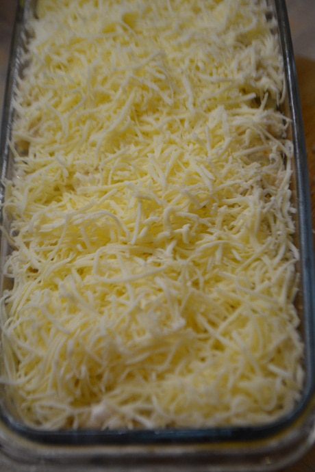 И посыпать натертым сыром. Выпекать в духовке при Т 180 градусов 45 минут.