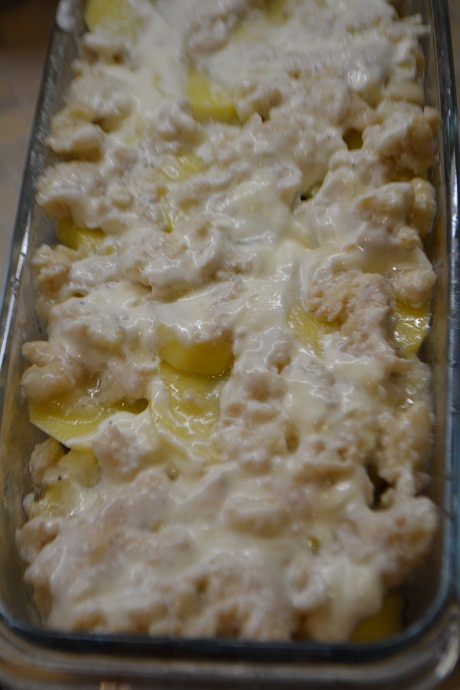 Форму смазать маслом. Картофель очистить и нарезать ломтиками, посолить.