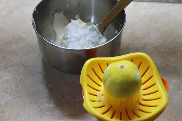 Снимите цедру с одного лимона и выдавите из двух лимонов сок. Для приготовления мороженого потребуется 100 мл.