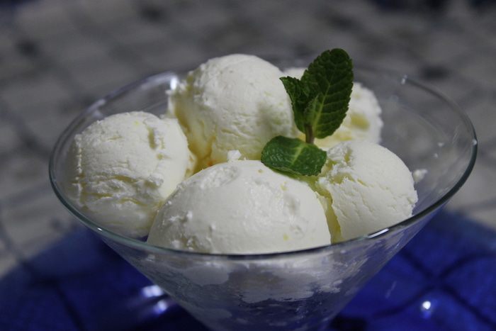 Переложите воздушный крем в емкость для заморозки и отправьте минимум на три часа в морозилку. Полностью мороженое окрепнет через 12 часов.