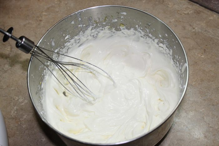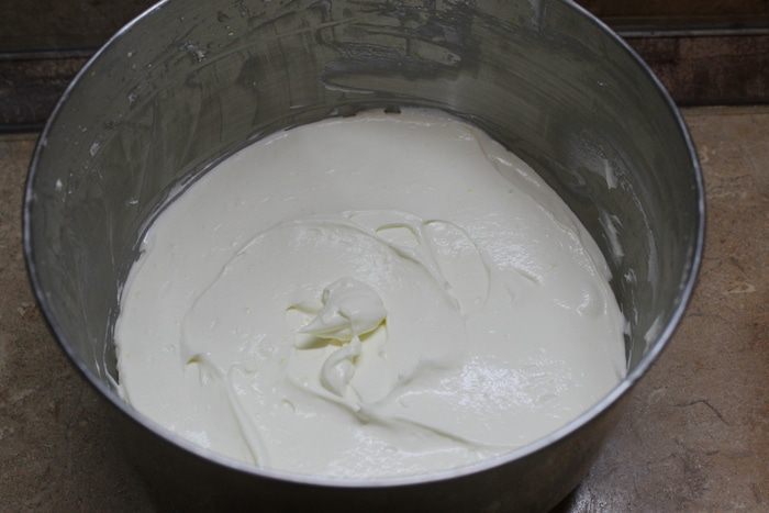 Добавьте к сыру маскарпоне молоко, сахарную пудру и цедру. С помощью миксера взбейте массу до кремообразного состояния, постепенно добавляя лимонный сок и лимончелло.