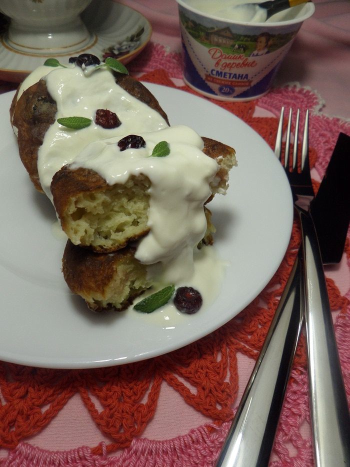 Подаем сырники со сметаной.