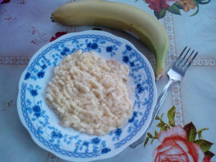 Банан очищаем и разминаем вилкой.