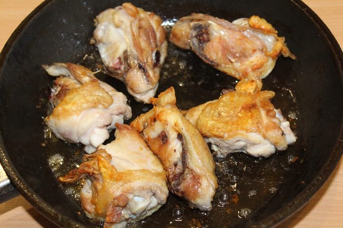 На самом деле кусочки курицы могут быть любыми, грудка, бедра, голени.