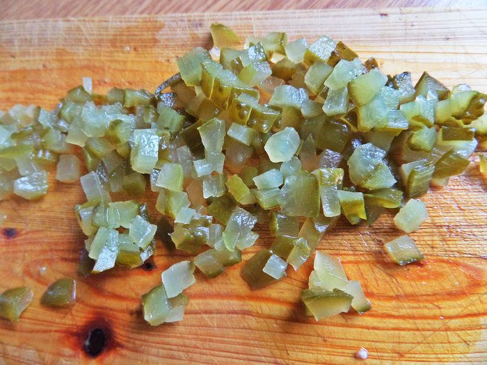 Вместо оливок на этот раз взяла огурец, совсем маленький достаточно.