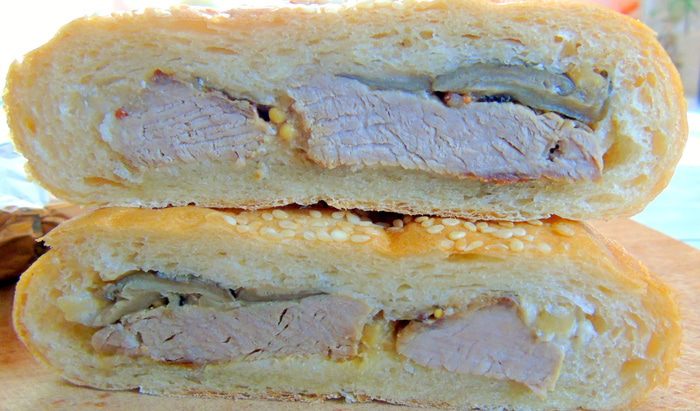 Здесь важен не сам рецепт, а идея)) такой бутерброд просто создан для пикников, какую бы вы начинку не положили, его удобно есть, нечего не выпадает и не вытекает.... А еще хорошо, что приготовить надо вечером, а утром взяли и марш на пикник)