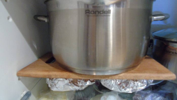 Ставим в холодильник под пресс, я для этого использовала кастрюлю с борщом))
