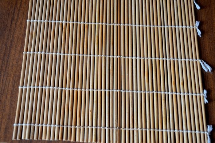 Аккуратно, не торопясь, сворачиваем с помощью циновки рулет. Секрета здесь целых три: