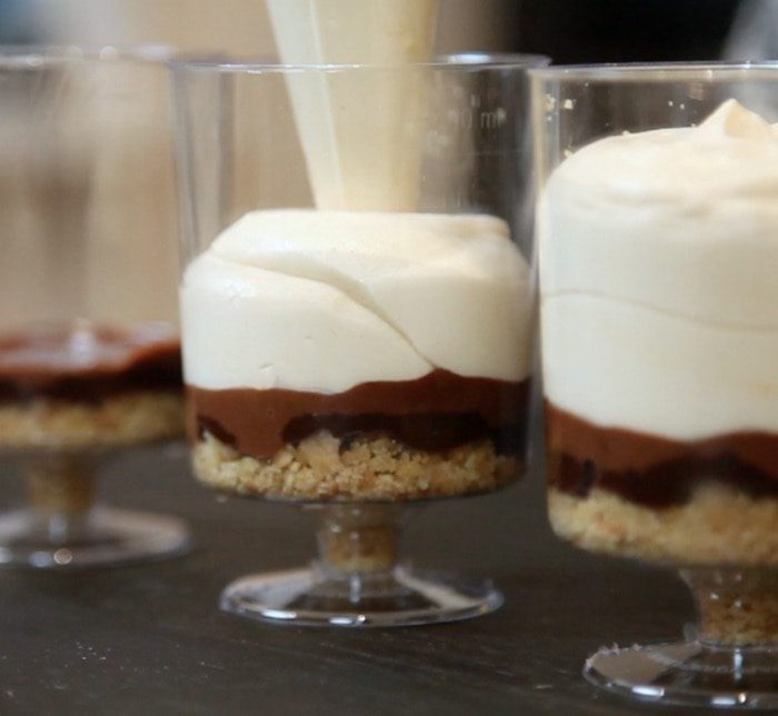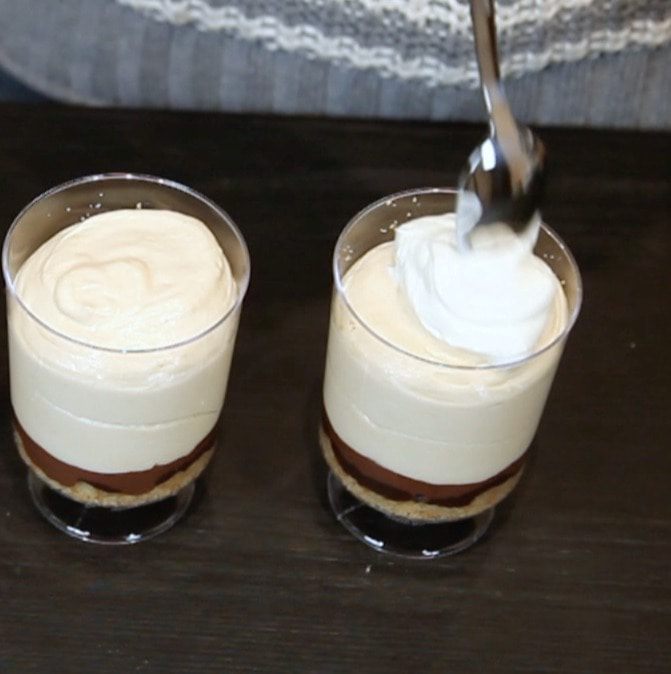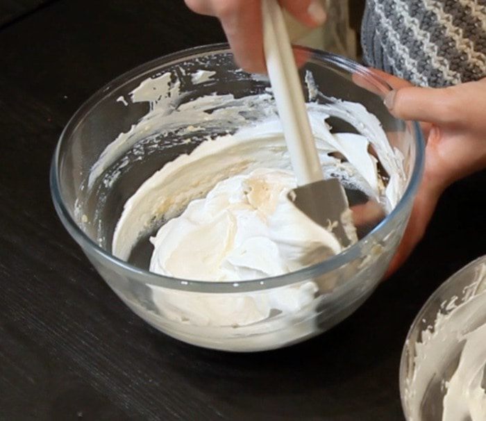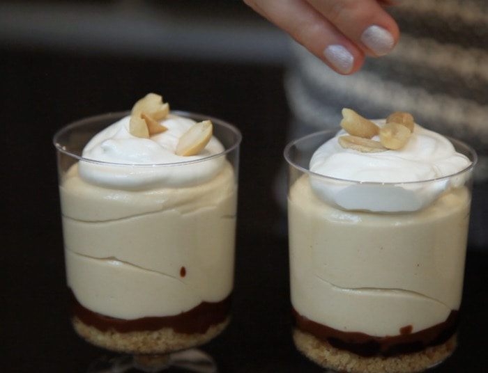 Аккуратно вмешать сливки в арахисовую основу. Оставить 4 ст. л. взбитых сливок для украшения.