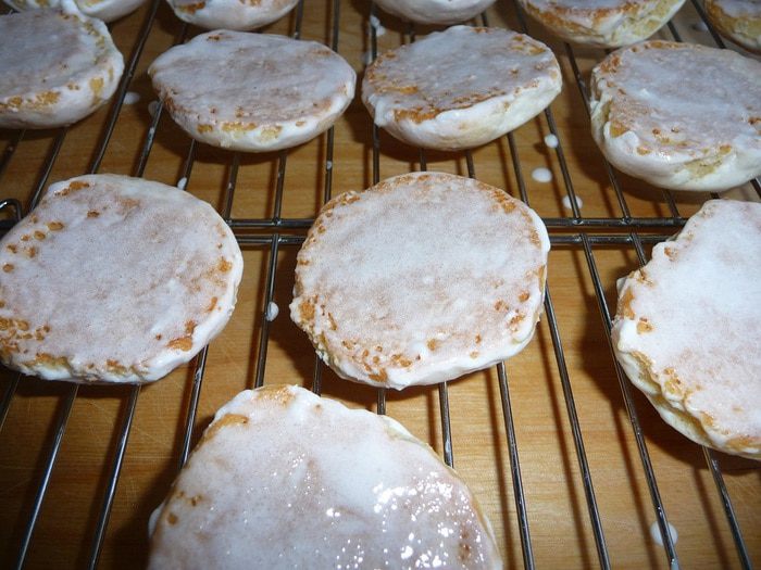 Готовые пряники сразу обмазать сверху глазурью с помощью кисточки, выложить на решетку, чтобы подсохли.