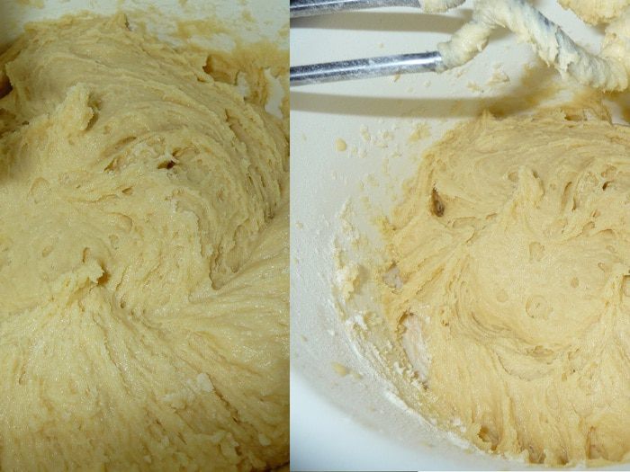 В муку добавить разрыхлитель, смешать. Вводить частями в яично-сахарно-сменанную смесь. Взбиваем миксером с обычными насадками, затем насадки поменять на спиральную для теста. Тесто мягкое.