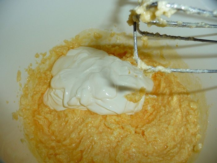 Продолжая взбивать, добавить сметану.