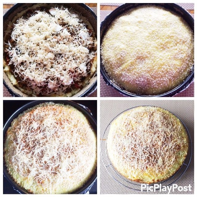 Отправляем форму в разогретую духовку до 180 градусов на 30 минут. Когда запеканка была готова, я обсыпала ее тертым пармезаном и на пару минут опять отправила в духовку, пока сыр просто растаял.