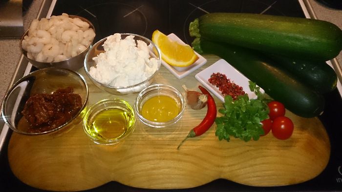 Конкурс «Италия» в самом разгаре, а я вот только решился. Приготовить хочу итальянскую закуску, которую я пробовал в одном маленьком портовом ресторанчике в городе Чивитавеккья. Мне очень понравилось сочетание печеных цукини с творожным сыром, базиликом, оливками, вялеными томатами, жареными креветками с медово-горчично-апельсиновым соусом. Теперь попробую сам приготовить, так что начнем!