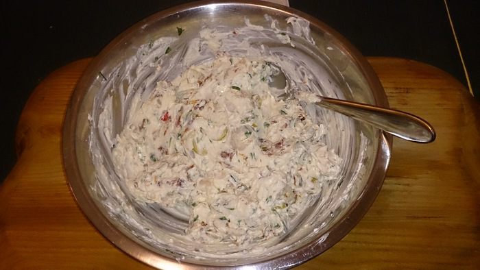 Соединяем все с мягким сыром.