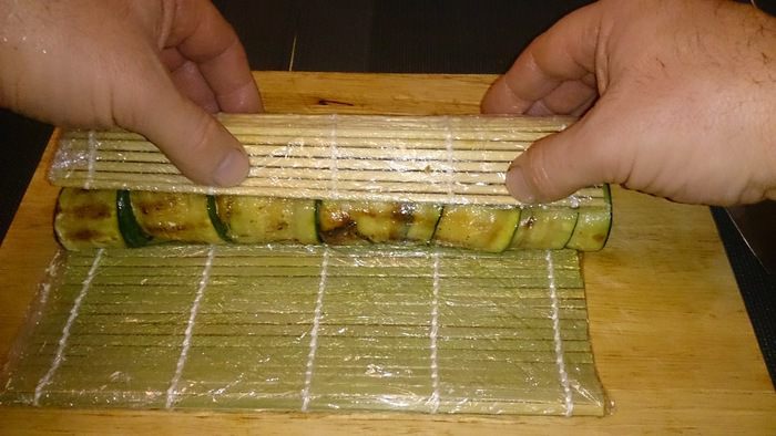 Аккуратно сворачиваем при помощи циновки.