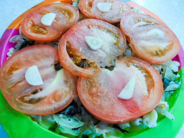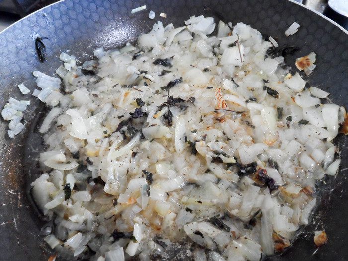 Через 5 минут добавляем к луку и чесноку травы: базилик, орегано, розмарин (по желанию). В общем, любые итальянские травы идеально подойдут к блюду и придадут исключительный аромат. Жарим, постоянно помешивая, еще пару минут. Перчим и солим по вкусу.