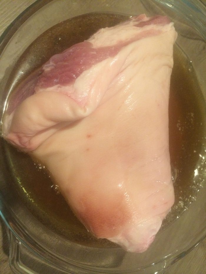 Рульку вымыть и замочить на 20 часов в пиве (поставить в холодильник, раза 3 перевернуть).