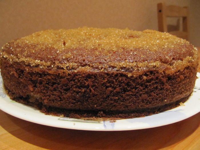 Дно круглой разъемной формы для пирога (диаметром 22 см.) выстелить пергаментом. Смазать форму небольшим количеством сливочного масла, слегка припылить мукой. Вылить тесто в форму, сверху выложить виноград и присыпать половиной коричневого сахара демерара. Отправить форму в разогретую духовку на 1 час. За 10 минут до готовности пирога посыпать его оставшейся половиной сахара демерара.