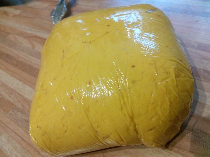 Тесто собралось в комок, обернуть его пищевой плёнкой и отправьте в холодильник на 2 часа.