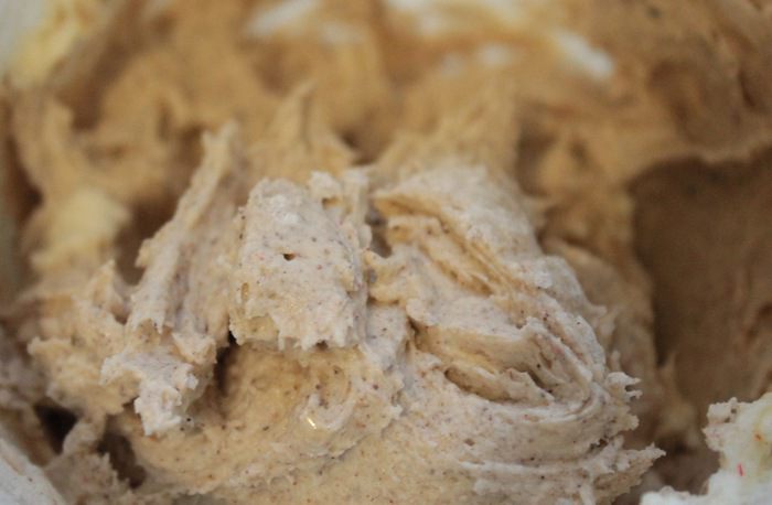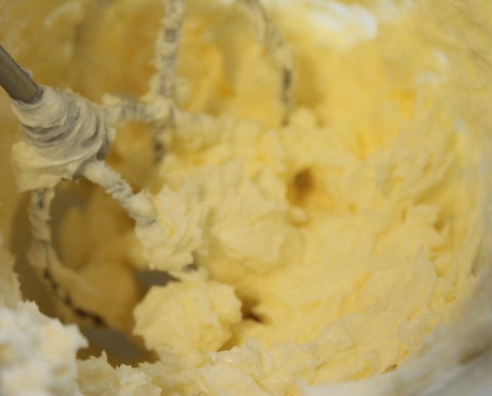 В другой миске взбить масло (обязательно комнатной температуры!) с сахарной пудрой на средней скорости миксера до пышности.
