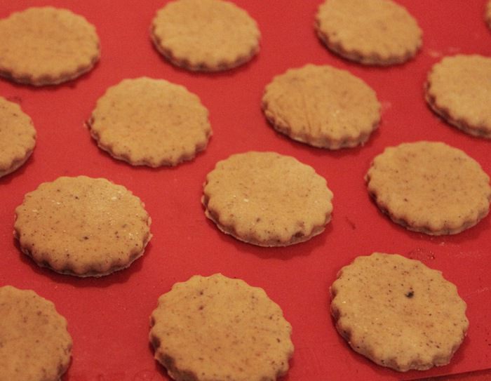 Охлажденное тесто нарезать кружочками толщиной 2-3 см и выпекать в разогретой до 180°C духовке 15 минут (до золотистого цвета).