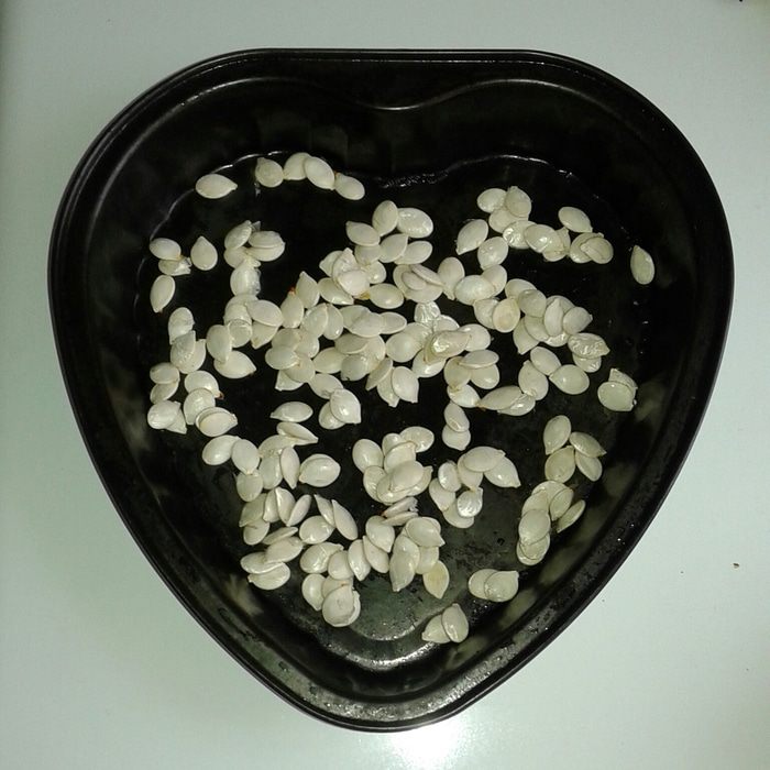 Когда они немного обсохнут, выкладываем в противень и ставим в духовку для полного высушивания, периодически помешивая. Я определила, что семечки готовы, когда они начали "стрелять". Также семечки можно сушить на сковороде или в микроволновке (мешать каждые 1-2 минуты).
